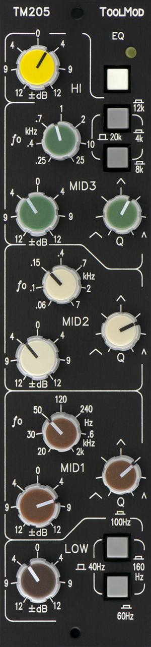 Der Stereo Equalizer TM205 ist die Stereo Version des 5 Band Equalizer TM105. Durch Kombination eines High-Low EQ's mit weichen Kurvenverläufen, die für globale Veränderung optimiert sind, mit 3 vollparametrischen Equalizern für komplexe Filterungen wird der TM205 zu einem effektiven Werkzeug bei der Klangbearbeitung. Der TM205 ermöglicht seidige wie durckvolle Höhen frei von Nebeneffekten und Härte und transparente, voluminöse Bässe. Die parametrischen Bänder ermöglichen, präzise, feine Anpassungen wie auch drastische Eingriffe in die Signalstruktur.