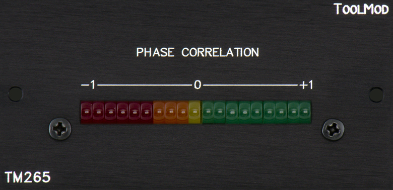 Die Anzeige erfolgt mit 19 Leuchtdioden mit einem Bereich von +1 bis -1. Bei einer Anzeige von +1 gibt es keinen Phasenunterschied zwischen den Kanälen, während bei einer Anzeige von -1 die Signale in den Stereokanälen gegenphasig sind.