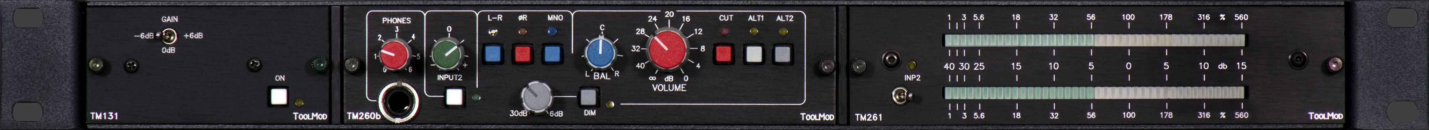 Toolmod MS-Monitor Set mit MS-Matrix, Abhörregler und Peakmeter mit TM131 MS-LR Matrix, TM260b Stereo Abhörregler und TM261 Stereo Peakmeter